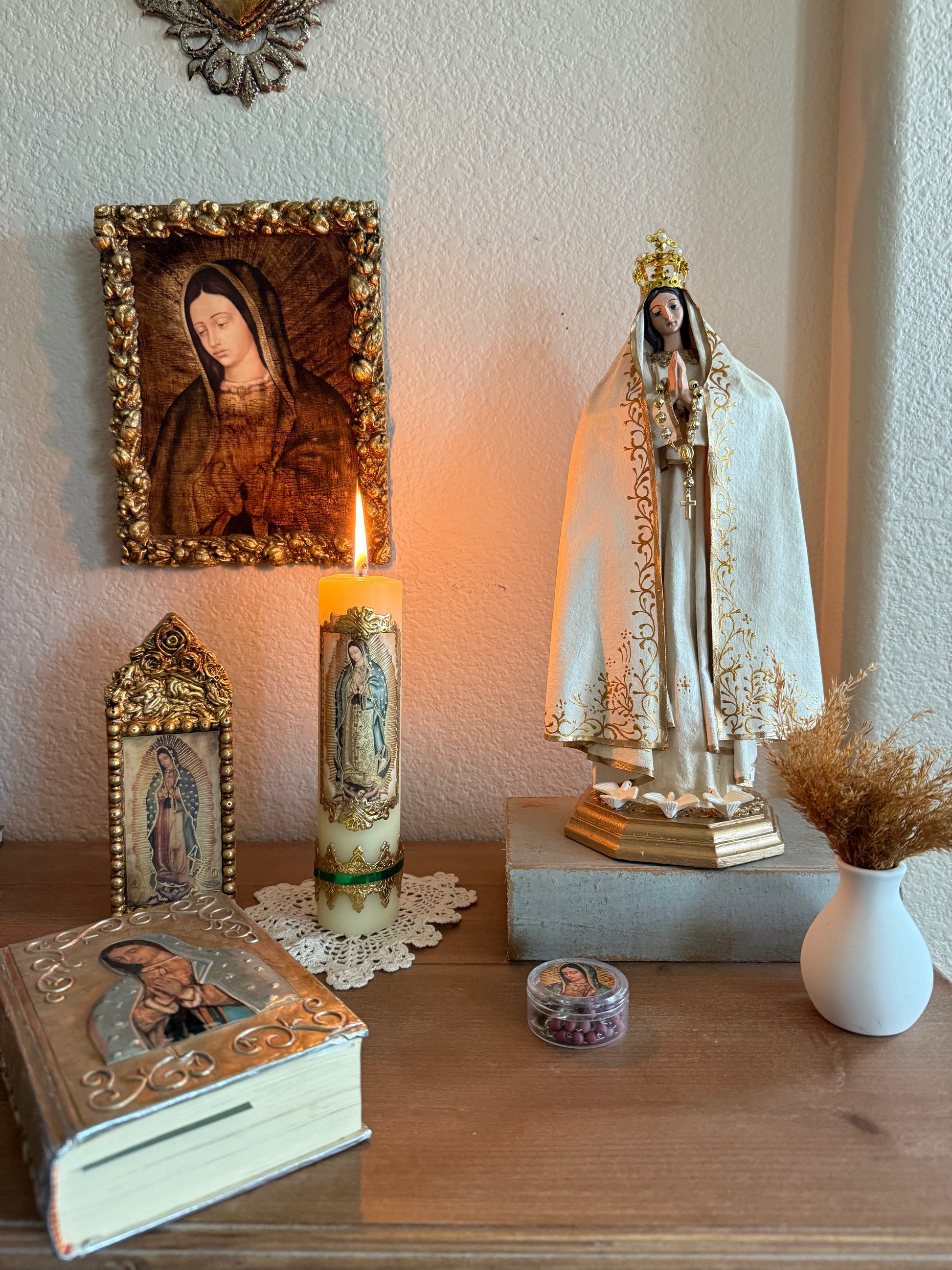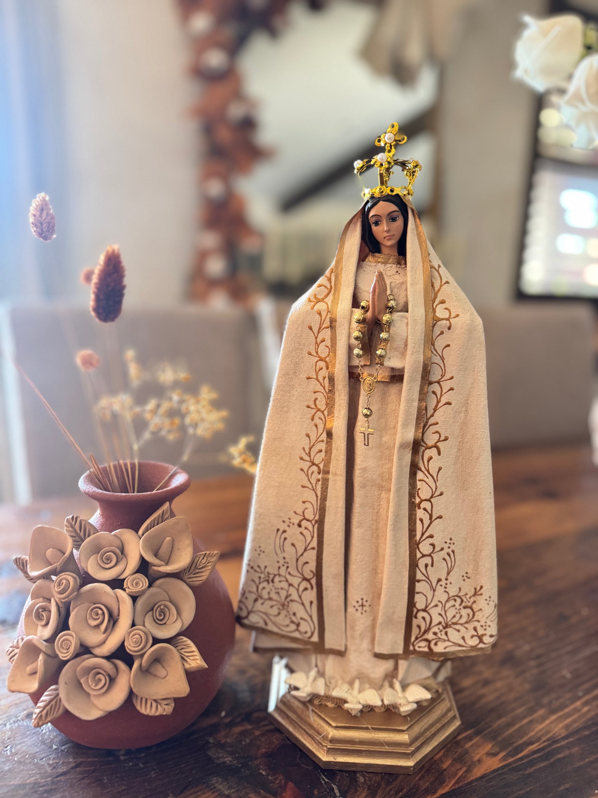 Virgencita with creme vail and white doves